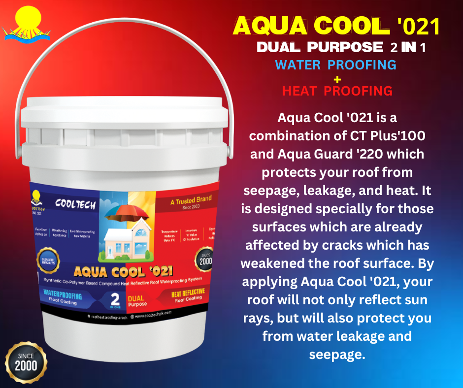 Aqua Cool '021 is a combination of CT Plus '100 and Aqua Guard '220, designed to protect your roof from seepage, leakage, and heat. It is specially formulated for surfaces that have already been affected by cracks, which can weaken the roof surface. By applying Aqua Cool '021, not only will your roof reflect sunlight, but it will also provide protection against water leakage and seepage.